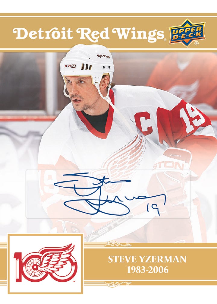 Our friends at Upper Deck have compiled two Centennial Sets to commemorate Detroit’s century of dominance. The first set, a 100-card retail set, features everyone from Nick Lidstrom to Dan Cleary. (Here’s a list of the potential cards you could wind up with!)