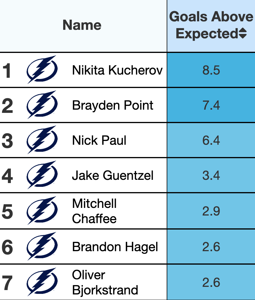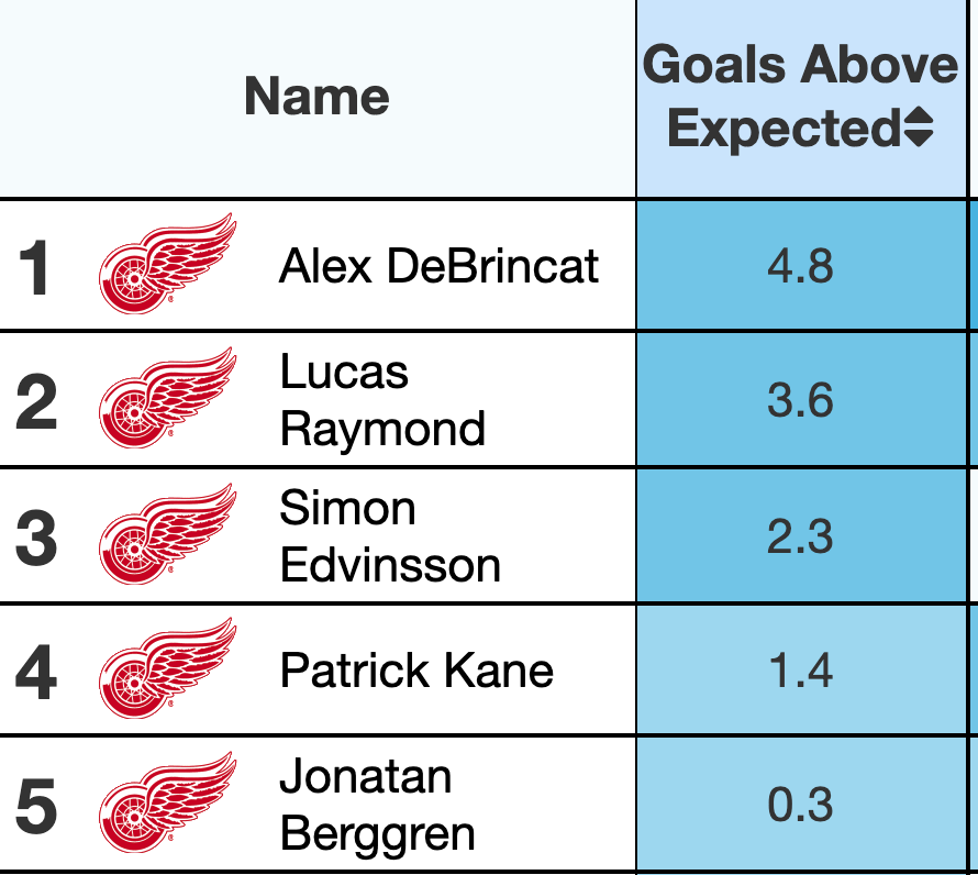 Their offensive metrics paint a much clearer picture. For the uninitiated, Goals Above Expected is a metric that gauges the likelihood a player will score a goal while on the ice. This number is put against the average NHL shooting metrics — so anything above 0.0 means the player is scoring at an above-average rate in relation to the quality of their shots. Can you guess how many forwards on the roster have above 0.0 goals above expected?