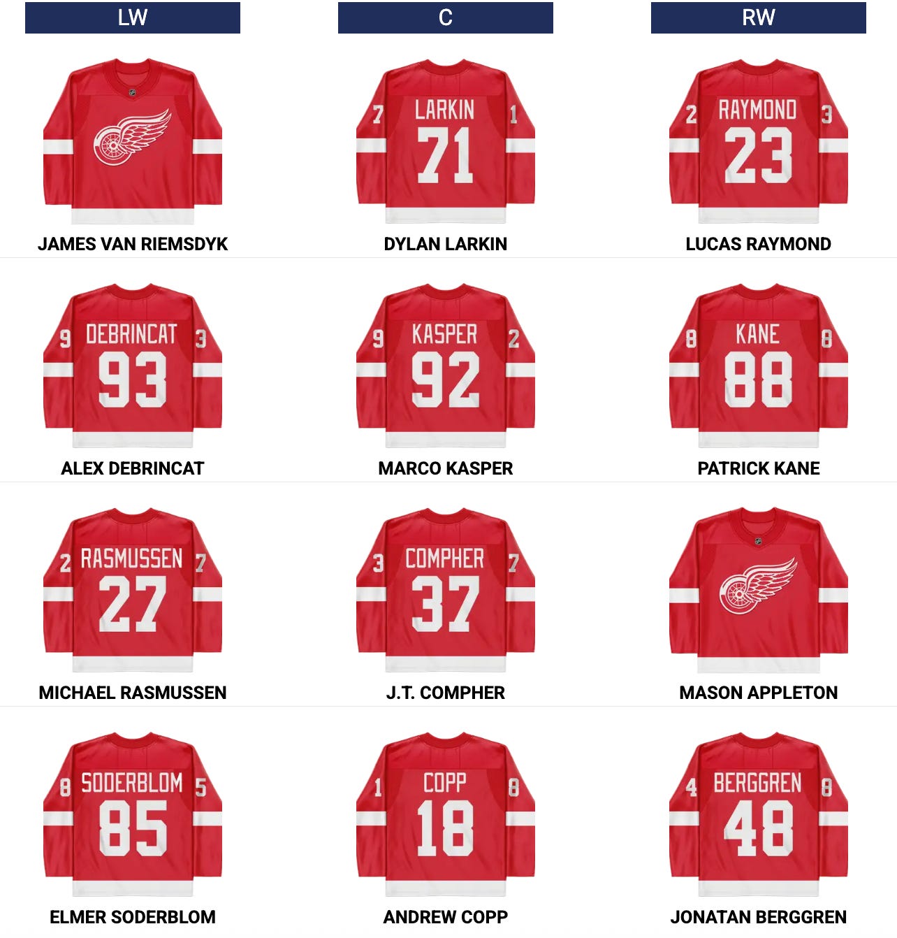 Daily Faceoff currently has J.T. Compher headlining the third line, flanked by Michael Rasmussen and newcomer Mason Appleton. Whether that becomes the reality or not remains to be seen. With that said, the lineup projection has Copp handling fourth line duties between Elmer Soderblom and Jonatan Berggren.